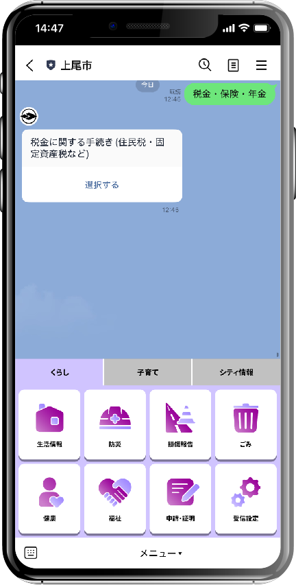 LINE公式アカウントから手続きを行いますので、LINEアプリをインストールしてユーザー登録を行ってください。