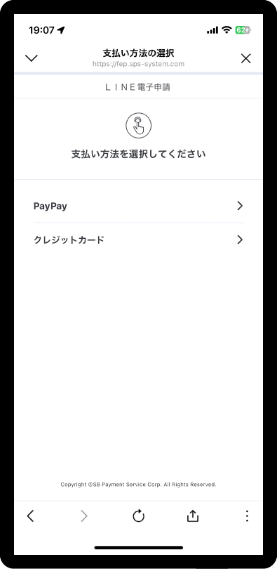 手数料や郵送料の支払いが必要な場合、決済画面が表示されます。